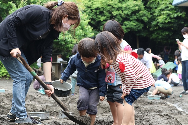 時々雨がパラつくけれど、子ども達は外で遊ぶ気持ち満々。
