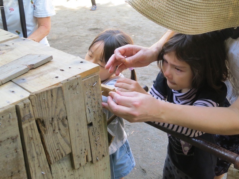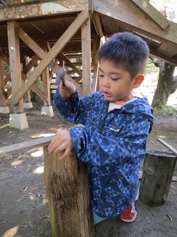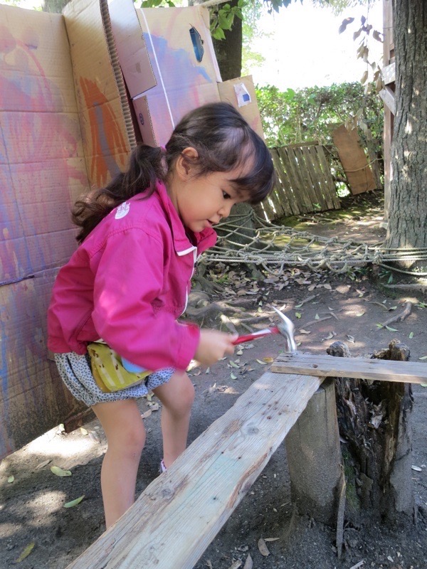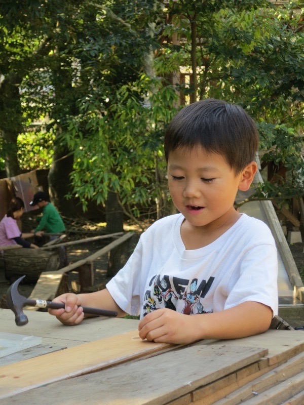 あちこちで積み重なって、また今日も園庭に世界が広がります。