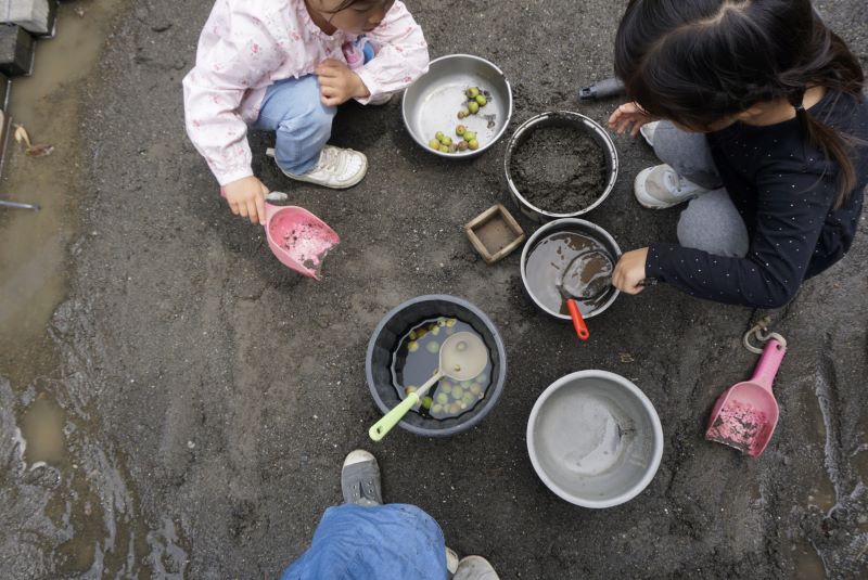 園庭ではたくさんの遊びが広がっています。