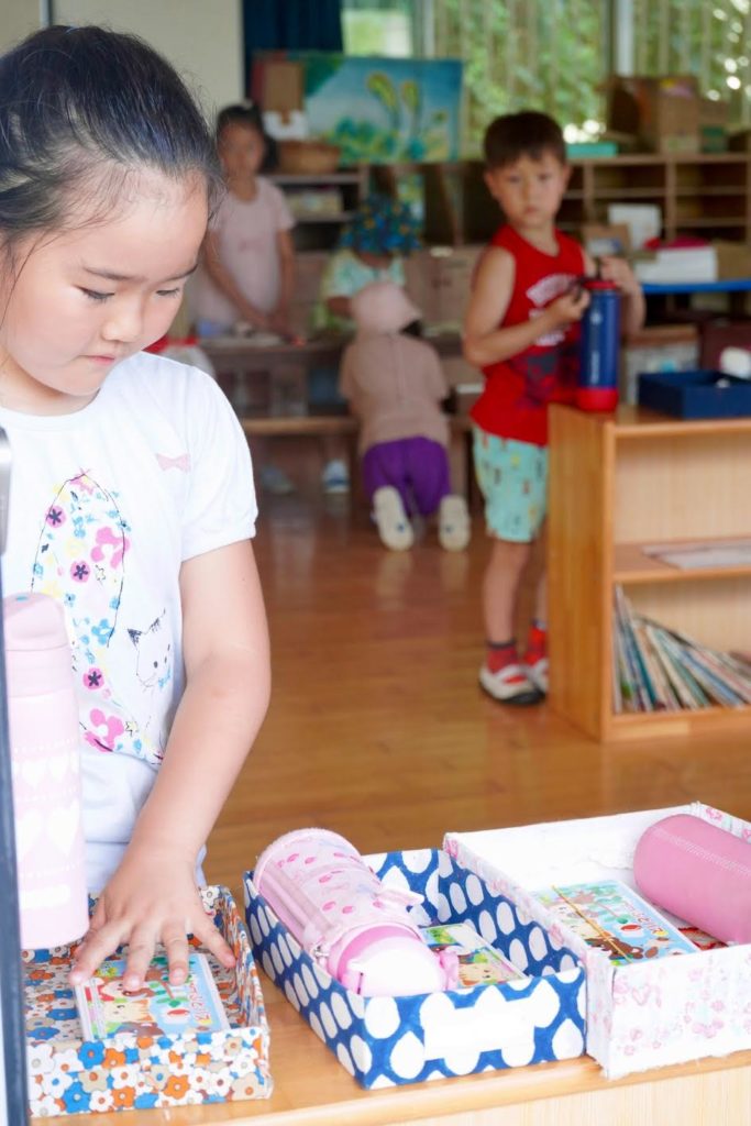 水筒とお道具箱を持って、今日もみんなで相談します。