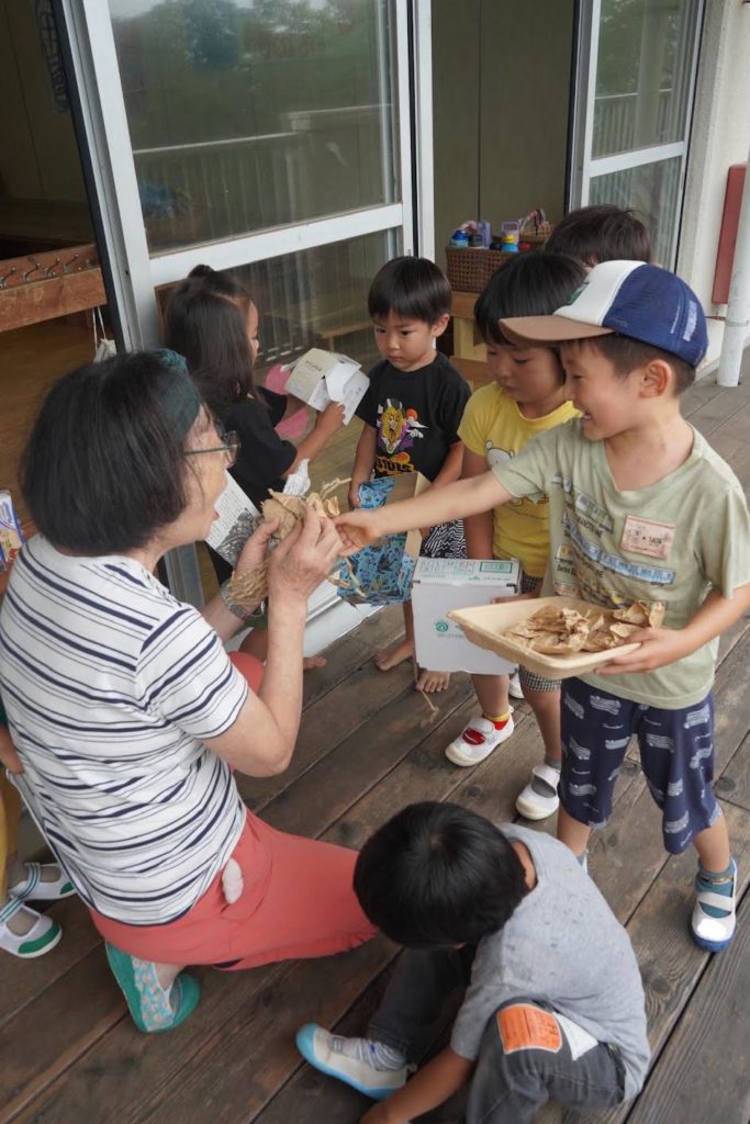 自分たちがつくったごはんを、マンモおばけに食べてもらっていました。