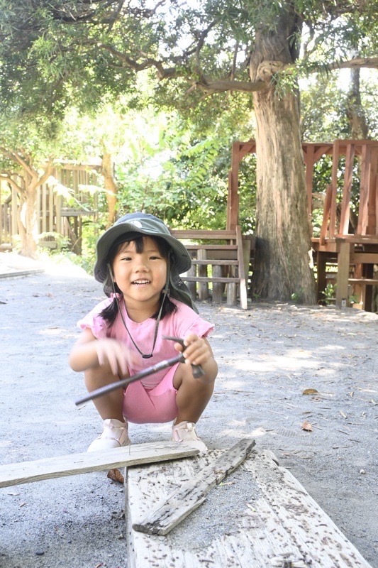 あかの子(3歳児)もだんだん釘を打つのに慣れてきています。