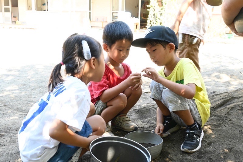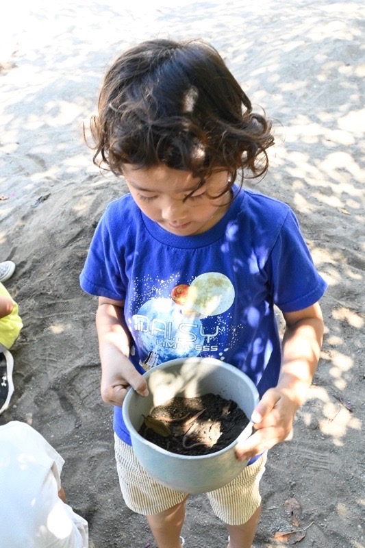 ミミズや、ダンゴムシを探している子どもたちも。