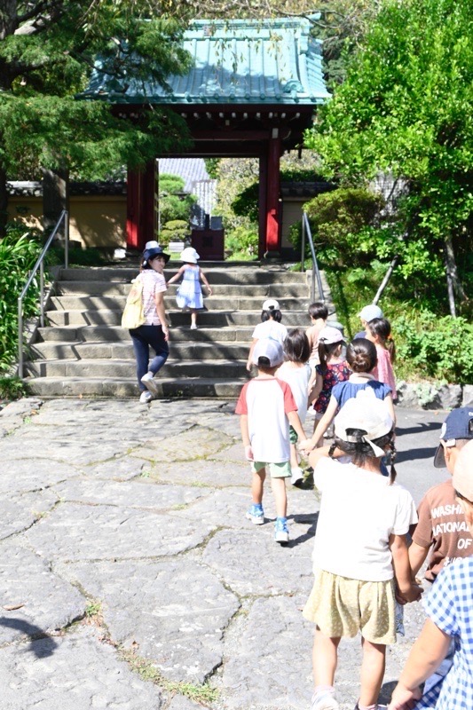 幼稚園を出て、歩くお寺の参道。