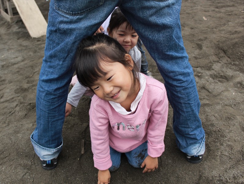 落とし穴に落っこちてしまった保護者を、2人がかりで「よっこいしょっっ!!」
