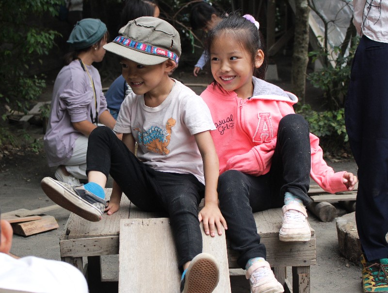 子どもたちが作る木材とトンカチで作る世界。