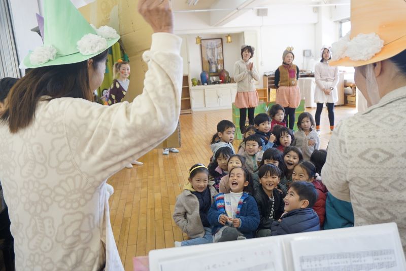 今日はきいろ母さんが考えた、さよならパーティーの日。どんなパーティーが始まるのか、ワクワクしながら2階のホールに向かう子どもたち。