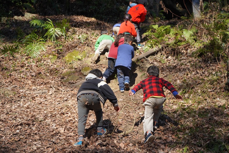 今日はみんなが待ちに待った山すべりの日。保育中にのみ行ける秘密の場所。