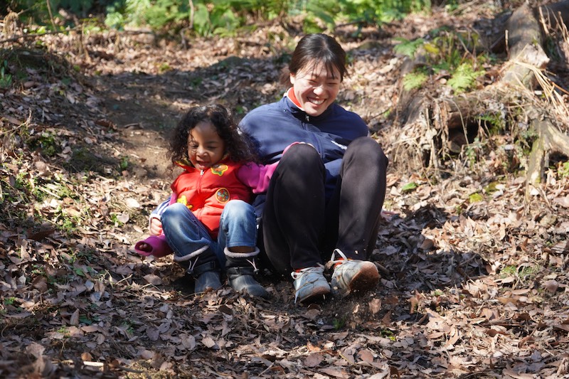 山すべりが楽しくて楽しくて。楽しさが表情から伝わる遊びって本当にすごい。