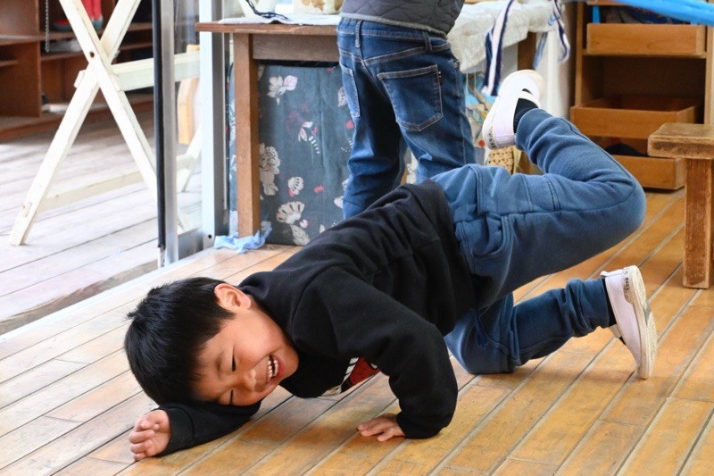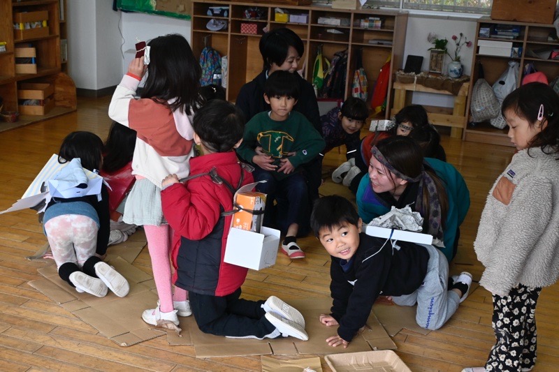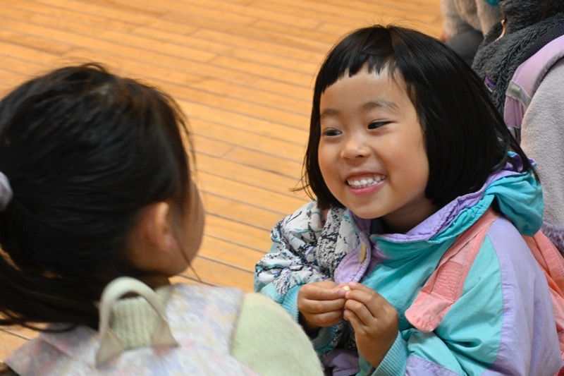 真冬に戻ったかのようなみぞれ混じりの雨が降り続き、園庭には川と水たまりができていた日。きいろの子(5歳児)はホールに集まって、さよならの日のことについて話し合いをしています。