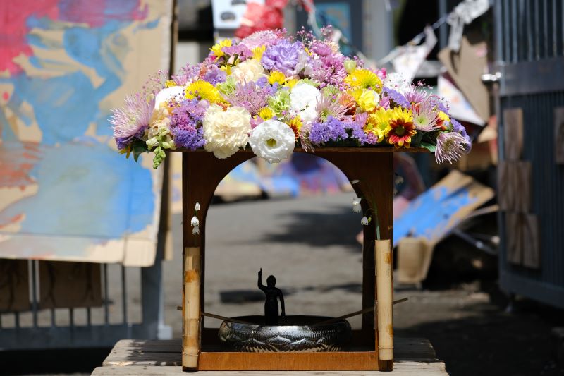 絵の具で塗りたくられた、たくさんの段ボールで飾り付けられた園庭は「ようこそ」の気持ちが詰まった温かい空間になりました。