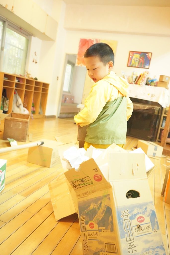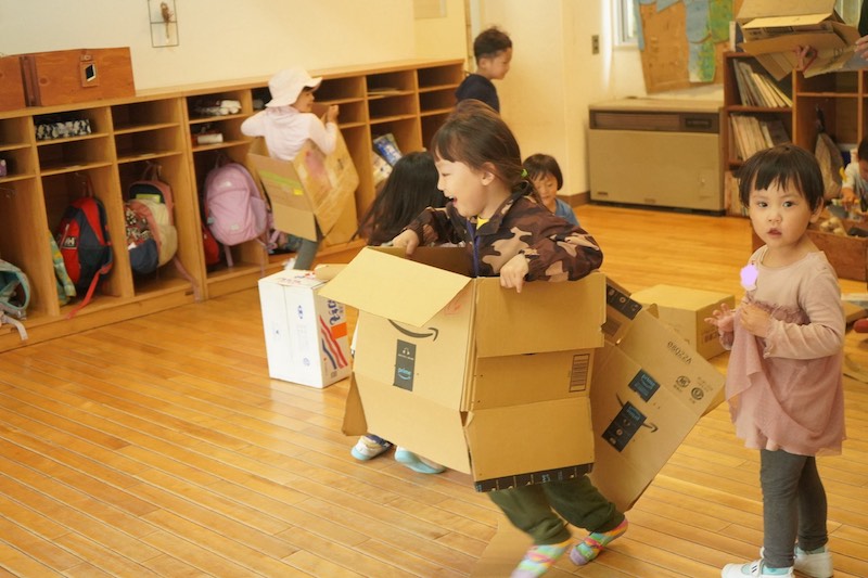 今日は登園するやいなや雨が降ってきたため、子どもたちは中遊びにシフトチェンジ。