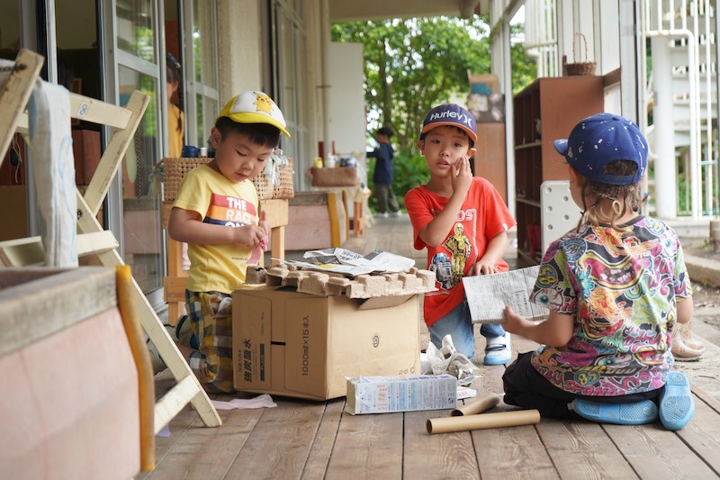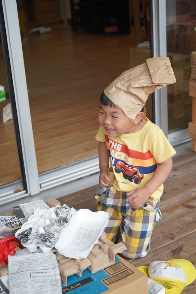 廊下に出ると、アイディアがどんどん形になっていく子ども達を発見。