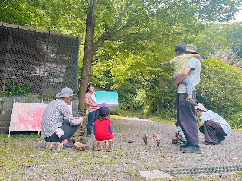 ちいさな切り株に腰をおろし、青空のもと見る絵本は子ども達にどう映るのでしょうか。