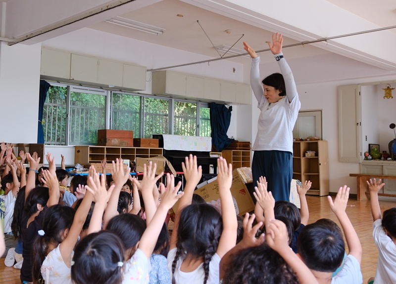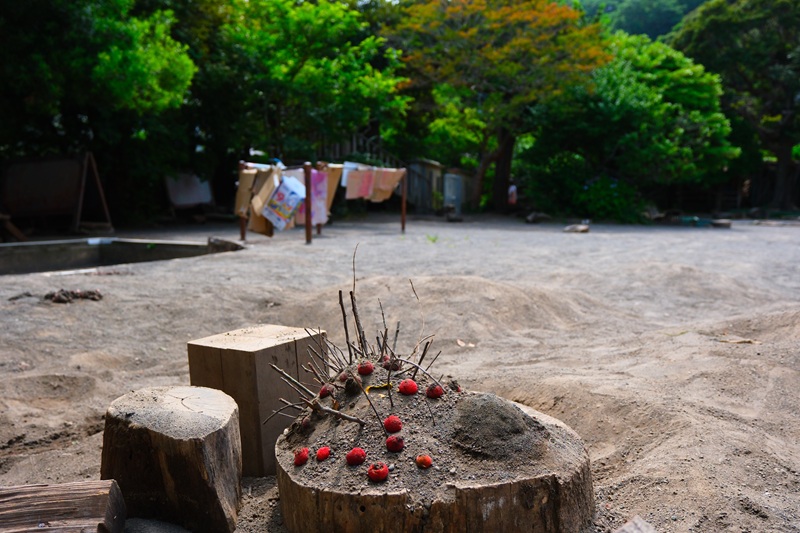 みんなで作った『長谷幼稚園』を囲って、歌をうたったり、ご飯をあげたり。