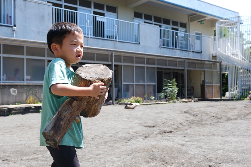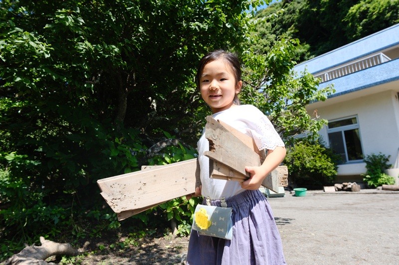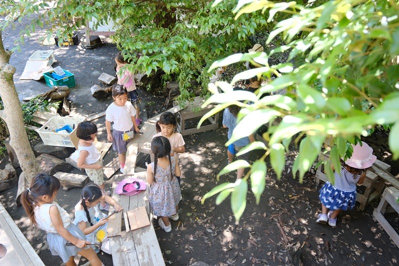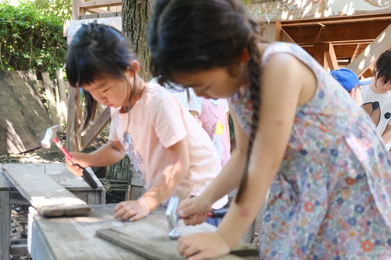 小さな大工さんたちにより、心地のよい音が園庭に広がっています。
