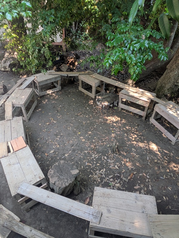 お迎えの後、完成したテーブルと椅子をのぞきに行くと、「今日はここで、お弁当食べたよ。『夜のようちえん』でも使うんだよ!」と、教えてくれました。