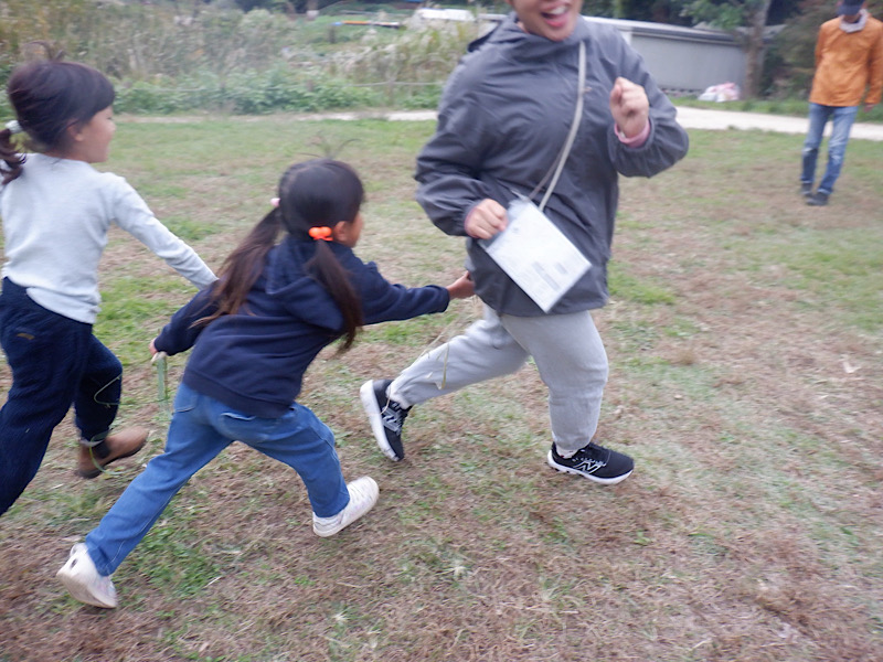 美味しいお弁当の後は、お楽しみのしっぽとりゲーム。子どもたちのすばしっこさにすぐ取られてしまう保護者たち。「こんなに取ったよー!」と取ったしっぽを誇らしげに見せてくれた子も。