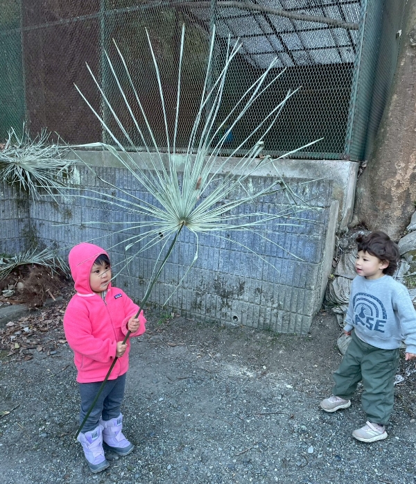 ももの子(満3歳児)が、くーちゃんに似ている葉っぱを見つけて喜んでいると、
