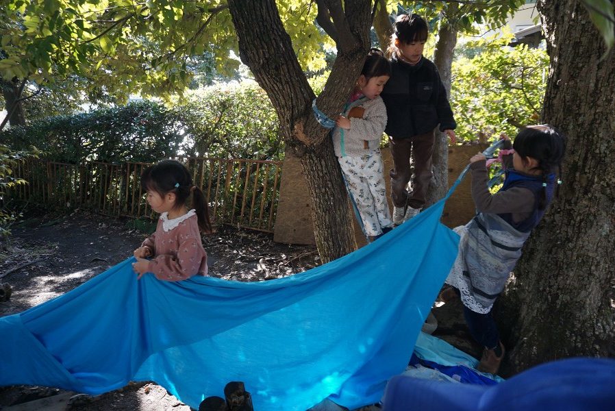 「それ、いいね!」「もっと大きいのもあったよ」と、葉っぱを集めて遊んでいました。