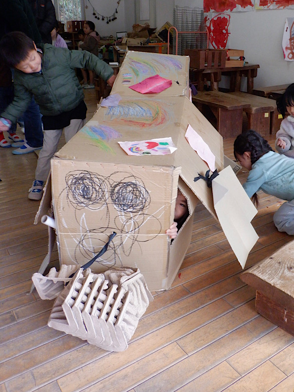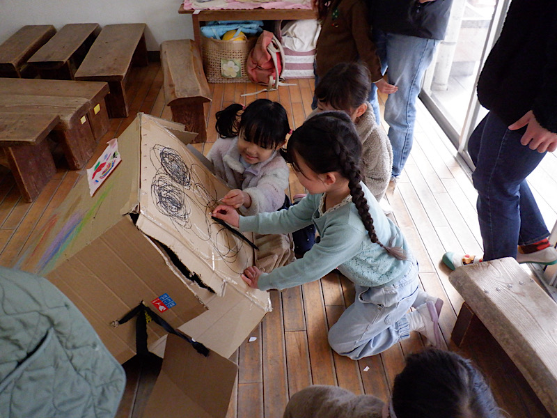 かぜ組の部屋を覗くと、中に入るのもちょっと気がひけるほど、一人一人が黙々と何かをつくっている様子がありました。