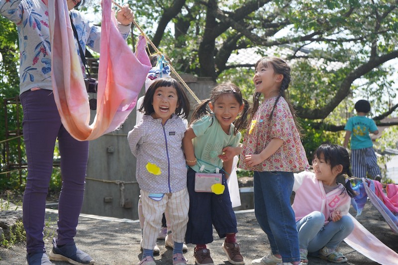 みんなで描いたこいのぼりが、空で泳ぐよー!!